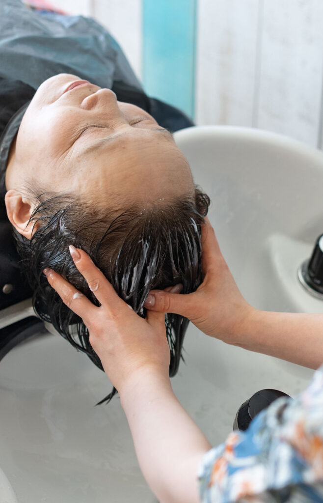 毎月必ずカラーかパーマをかけられ、色もアッシュ系やブルー系、いろいろ試し、おしゃれを楽しんでいるお客さまです。
