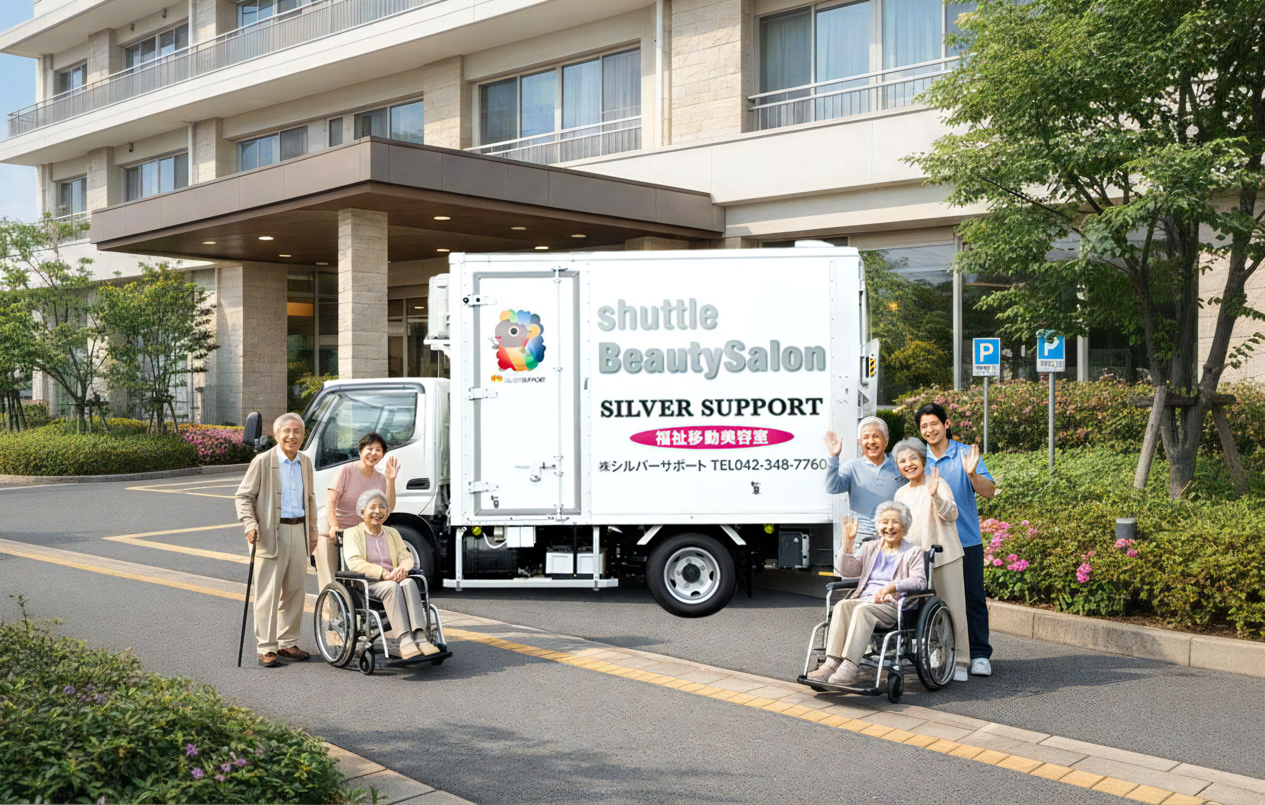 美容室機能を備えた車両による「移動美容室」と、専門スタッフが直接施設や在宅にお伺いする