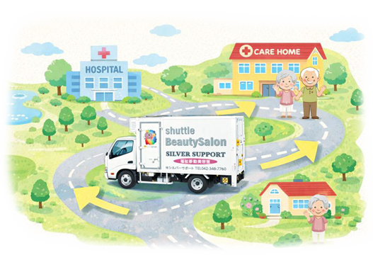 東京都、埼玉県、神奈川県を中心に300箇所以上の実績があり、福祉施設である特別養護老人ホーム・有料老人ホーム・介護老人保健施設・障がい者施設をはじめ、その他の介護施設や医療施設に美容室機能を備えた車両による「移動美容室」と、専門スタッフが直接施設や在宅にお伺いする「訪問出張」サービスを提供しております。